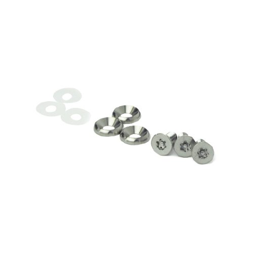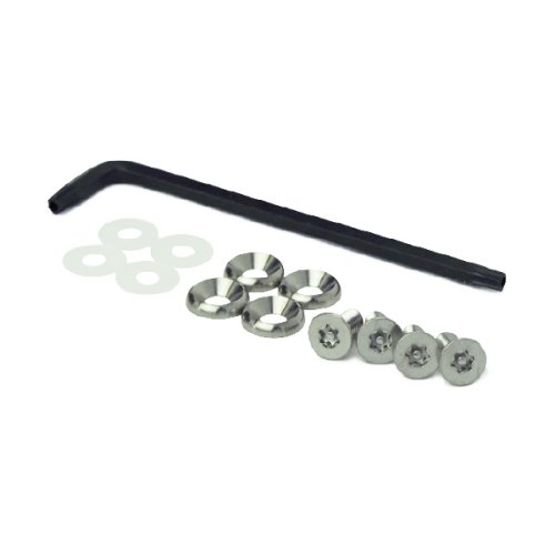 ボルトはトルクスのセンターピン付きで、専用工具を使用しないと締めたり緩める事ができないため、ナンバープレートの盗難防止に効果があります。ワッシャーはローゼットタイプを使用しているため見た目の収まりもスッキリするようになっています。ローゼットワッシャーは無垢のステンレスからの切削にて仕上げている挽出製なので、安物のプレス品と違い上品な高級感があります。
